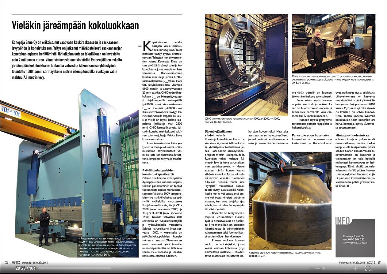 - Konepaja Enne OY - järeä särmäyspuristin - lue artikkeli